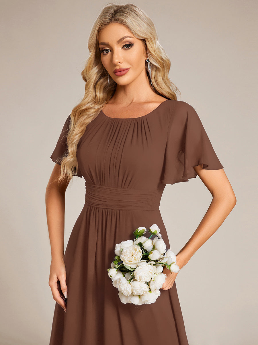 Color=Espresso | Fast Delivery Short Sleeve Ruffle Pleated A-Line Floor Length Bridesmaid Dresses-Espresso 38