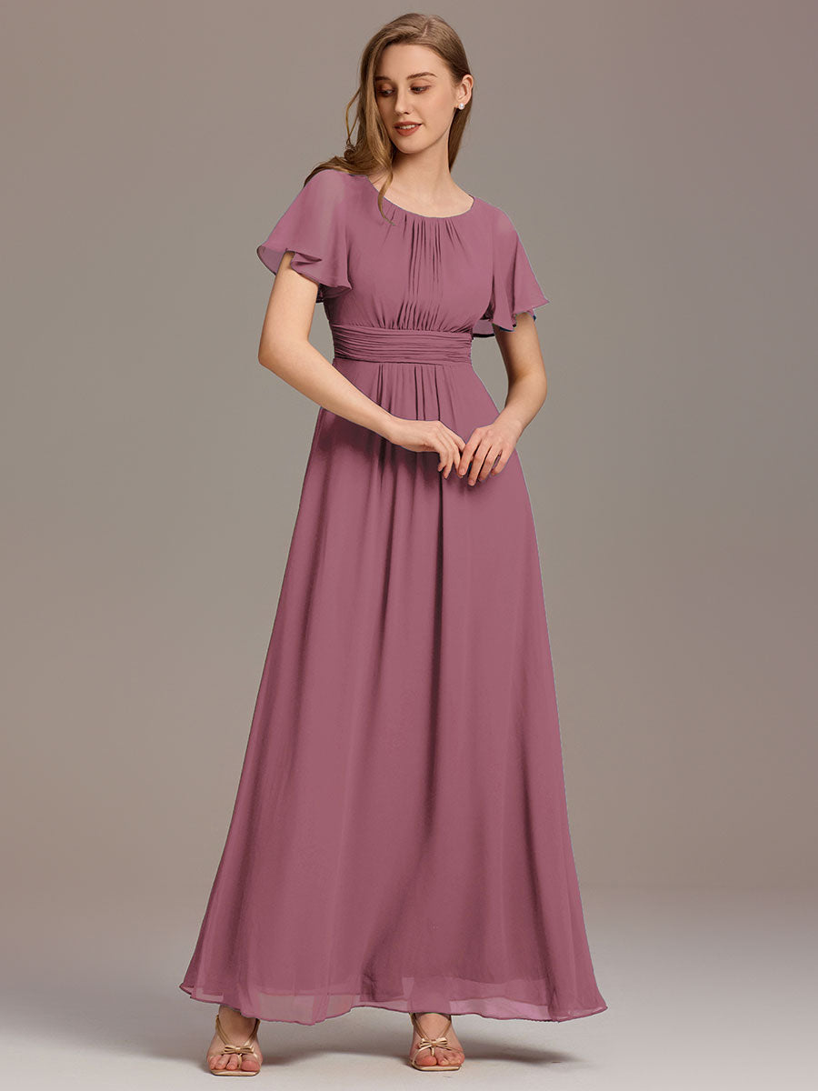 Color=Dusty Rose | Fast Delivery Short Sleeve Ruffle Pleated A-Line Floor Length Bridesmaid Dresses-Dusty Rose 14