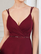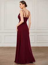 Look the hottest in the crowd by getting your hands on this bridesmaid dress. It features spaghetti straps, deep V-neck, an A-line silhouette, and is also backless.