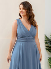 This plus size bridesmaid dress has an excellent style and class that none has ever seen. It features a deep V-neck at the front and back. The asymmetrical hemline and pleated decoration will steal everyone's heart away and all eyes will be on you. By wearing this bridesmaid dress you will make many fans.