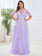 Look the cutest at the party by wearing this pretty evening dress. It features a deep V-neck, A-line silhouette, and cover sleeves. The dress has knee-length and has flower decorations on the bodice that look very pretty.