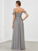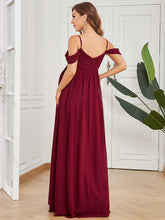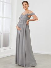 This beautiful maternity dress should be in your closet because it will make you look like a fairy. The dress features an A-line silhouette and off shoulders. It also features pleated decorations and look lovely from all the angles.