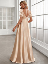 Look the cutest in the crowd by wearing this cute maternity dress. Its style includes a deep V neck, short puff sleeves and an A-line silhouette. This floor-length dress is simple yet it looks very glamorous.