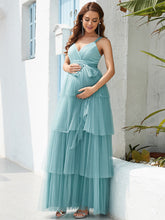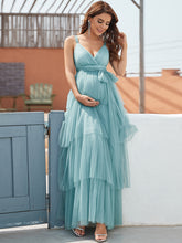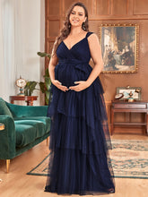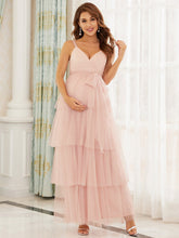 Look hot with a baby bump by wearing this gorgeous maternity dress. This dress is sleeveless, has 4 layers, and an A-line silhouette. The bow tie at the front and deep V-neck will also make the wearer look flattering.
