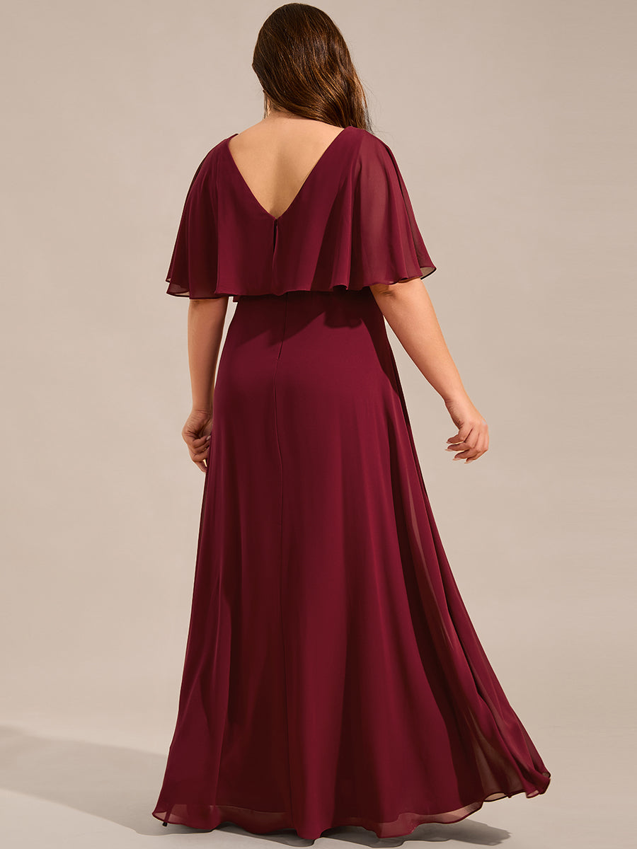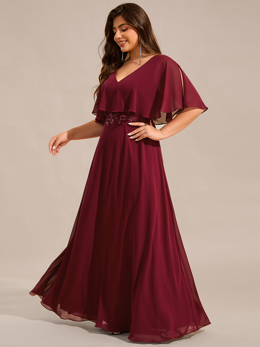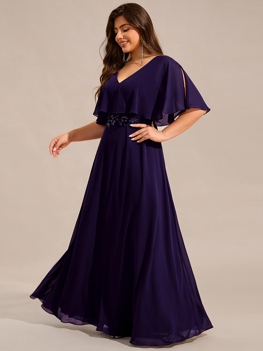 Elegantly crafted, our Shawl Bat-wing Sleeve Chiffon Evening Dresses embody a timeless charm. The flowing chiffon fabric drapes beautifully over the figure, while the bat-wing sleeves add a dramatic flair. Adorned with intricate applique decorations, these dresses catch the light with every graceful movement, making you the center of attention at any special occasion. Perfect for weddings, galas, or red carpet events, this dress promises a night to remember.
