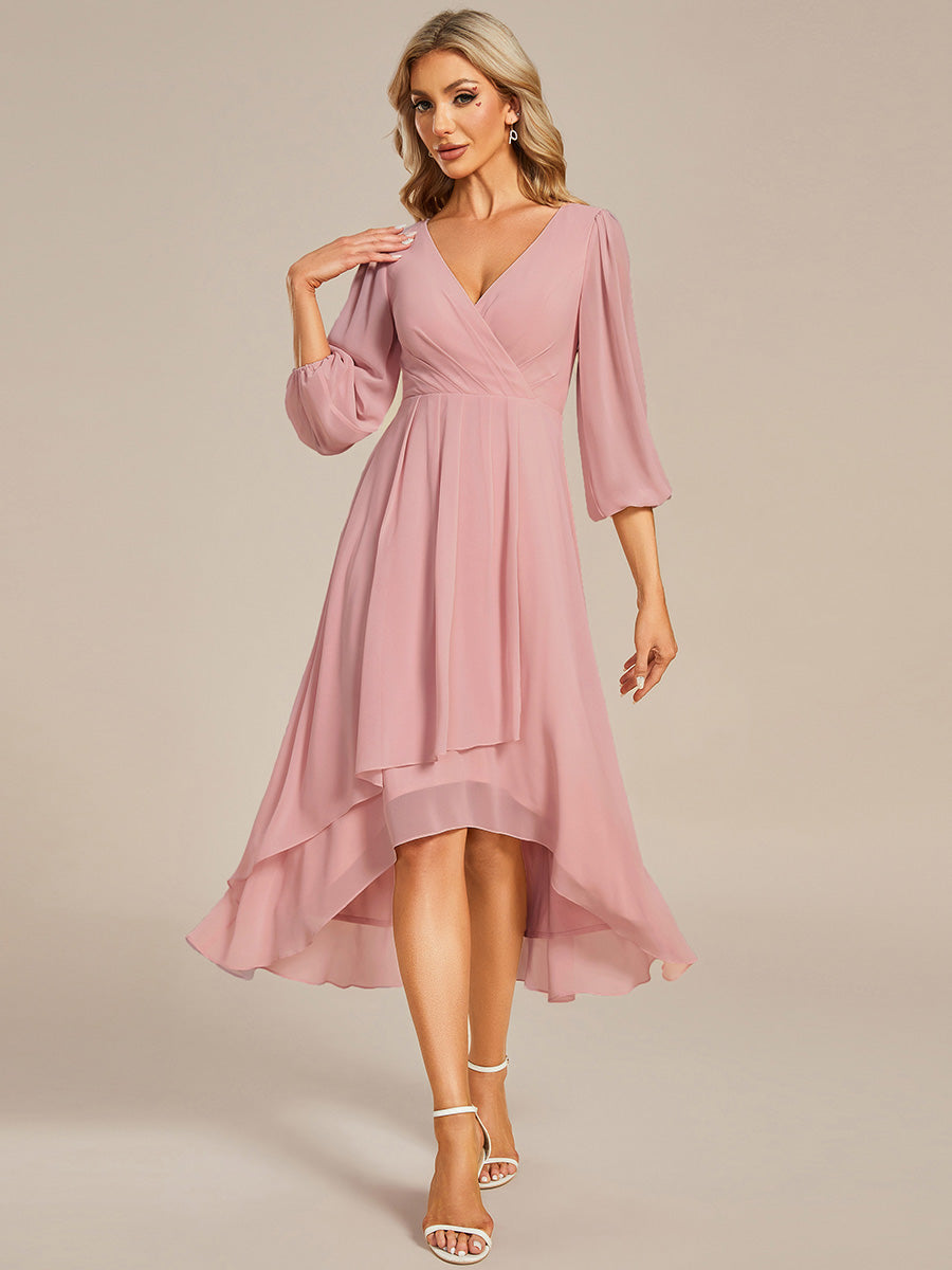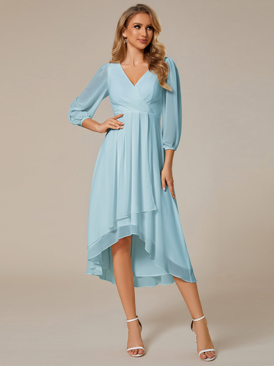 Graceful chiffon elegance: Long sleeves, pleated ruffles ??¨¬C the perfect wholesale choice for wedding guests.