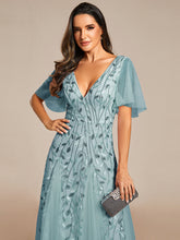 This evening gown features a double deep V neckline and ruffles sleeves. The shimmery leave design gives a romantic vibe.No matter what occasion, it will make you look gorgeous and elegant. Suitable for evening party, cocktail, weddings, prom, homecoming and graduation!