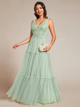 Embroidered elegance awaits in our V Neck Wholesale Chiffon Evening Dress With Sleeveless. Exquisite embroidery accents the V neckline, creating a timeless and sophisticated look. The lightweight chiffon flows gracefully, perfect for any formal event. Wholesale quantities available - order yours today!
