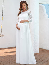It is the time to make every head turn by wearing this beautiful wedding dress. This wedding dress is made for pregnant brides who wants to look finest on their wedding. The wedding dress has a round neck and see-through half sleeves. There is also a bandage present on the waistline which helps to accentuate the baby bump.