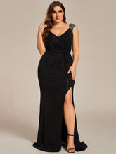 Color=Black | Plus Glitter Split Wholesale Evening Dresses-Black 1