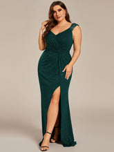 Color=Navy Blue | Plus Glitter Split Wholesale Evening Dresses-Navy Blue 3