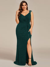 Color=Navy Blue | Plus Glitter Split Wholesale Evening Dresses-Navy Blue 2