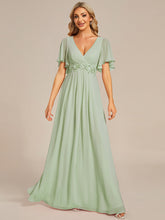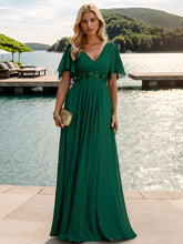 Elegant V-neck, intricate lace appliques, and stunning pleated design. Wholesale price, perfect choice for bridesmaids.